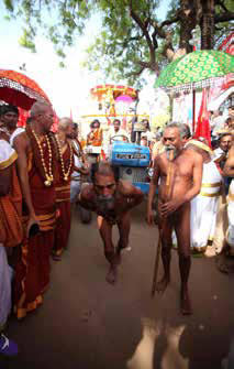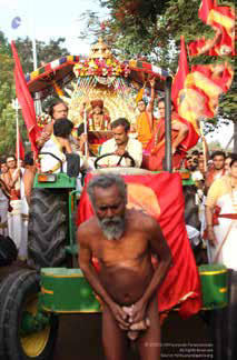 These two aghoris subsequently pulled the chariot of The SPH just with their genital organs. In the aghori tradition, this feat is offered as a form of worship only to the incarnation of Paramaśiva. For the most senior monks, it is considered the highest honor and act of devotion to offer this to The SPH. The two aghoris were also initiates of another Aghori named “Naga Giri Baba”, who knew The SPH from around 11 years of age. Naga Giri Baba had instructed them to offer this worship to The SPH, as a symbol of their greatest achievement.